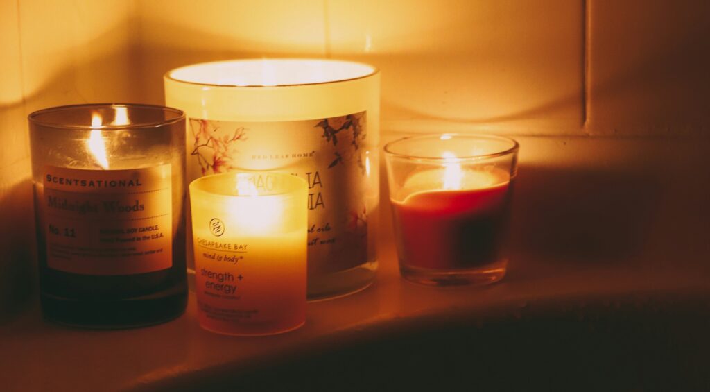私は、お風呂に浸かりながら目をつぶって過ごしたり、電気を消してアロマの香るロウソクをつけてます。